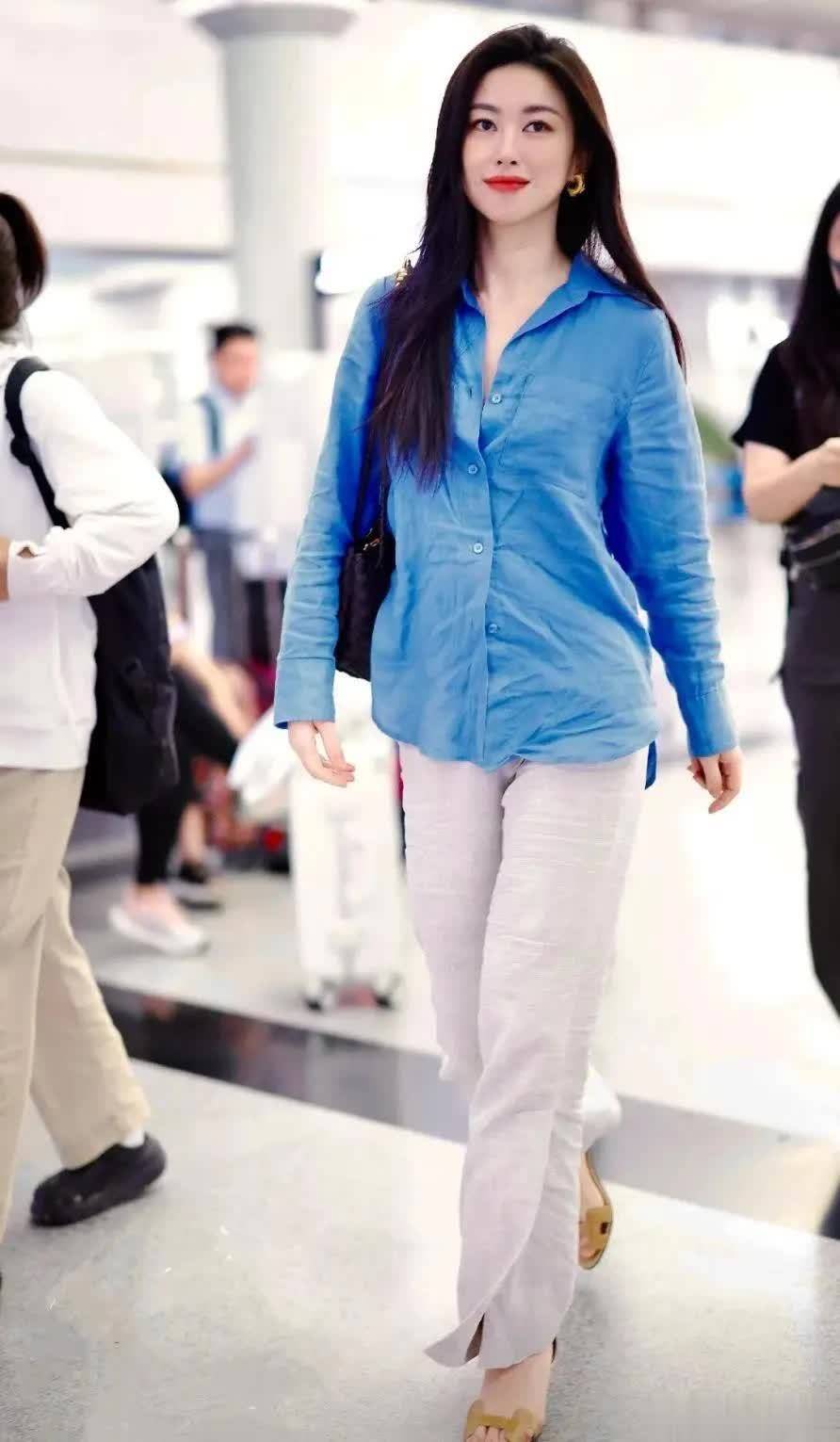 #朱珠穿搭 #衬衫搭配 #时尚潮流 #阔腿裤搭配